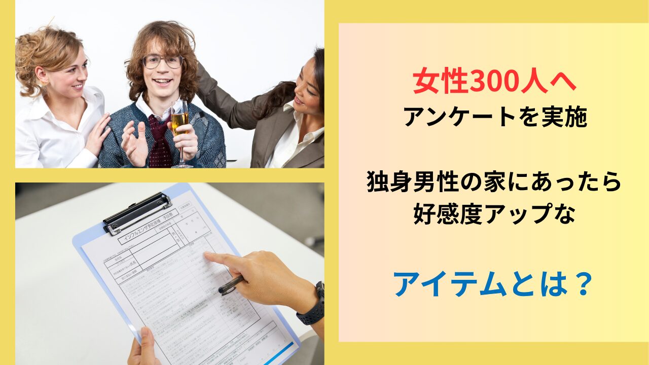 お付き合いしていない男性の家に女性が上がるというケースはなかなかないものです。そのため独り暮らしの男性の家に興味を持っている女性は多いものです。今回は女性300人にアンケートを実施し、男性宅にあったら好感度が上がるアイテムについて調査を実施しました。