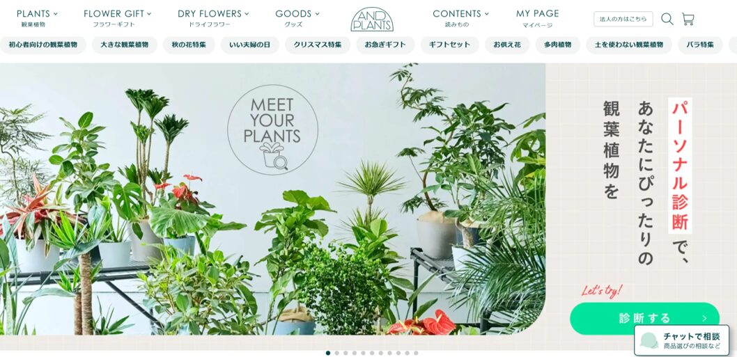 AND PLANTS パーソナル診断であなたにあう観葉植物を提案