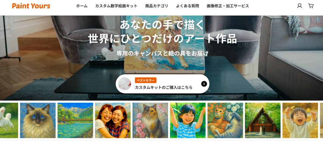 ペイントユアーズというサービスをご存じでしょうか?思い出の写真をサイト内にアップすると絵画にするためのキャンパス・絵の具・筆などを送ってくれ手順に沿って塗り絵感覚で進めるだけで世界に一つだけのアートが完成するというサービスです。