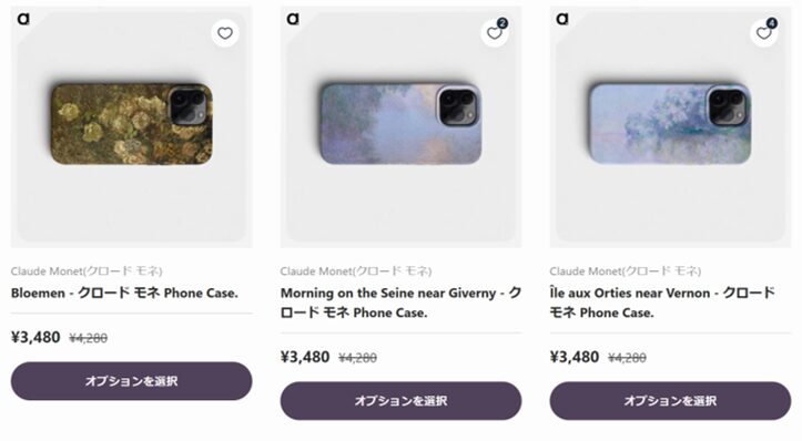 アートグラフでは絵画ポスターの他にも有名画を印刷したスマホケースなども販売しています。
