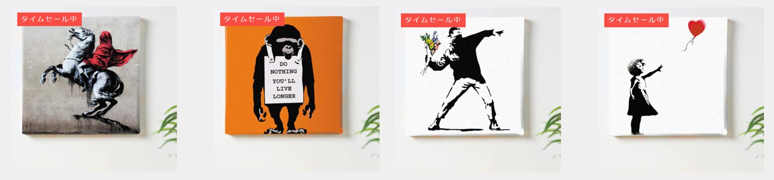 また、バンクシーの作品も多数そろえており複数点飾るのも楽しいものになっています。