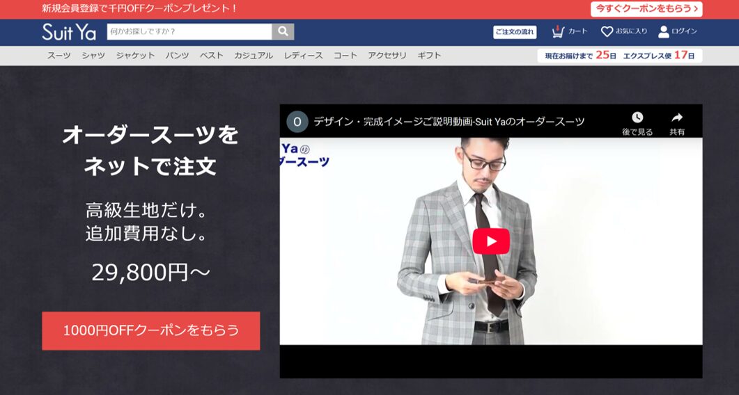Suit Ya(スーツヤ)はネット注文&自社工場からの直送という方法にてコストを極限まで抑えることでオーダースーツが29,800円~という超格安にて実現しているのが魅力です。