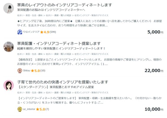 家具を選ぶ機会は人生でもそう何回も経験しているという人は少ないことでしょう。さらに家具選びで最新のトレンドなども熟知しているというのはインテリアコーディネーターなど仕事として普段から家具を見ている人くらいなものです。インテリアコーディネーターの仕事の多くは新築などの家の購入時やオフィスなどの大きな案件がほとんどで個人の家具選びなどを専門の仕事をしている人はほとんどいません。そのためココナラのようなスキルシェアサービスを利用するのがおすすめです。普段は会社員で働いているような人が副業として家具の相談になってくれます。