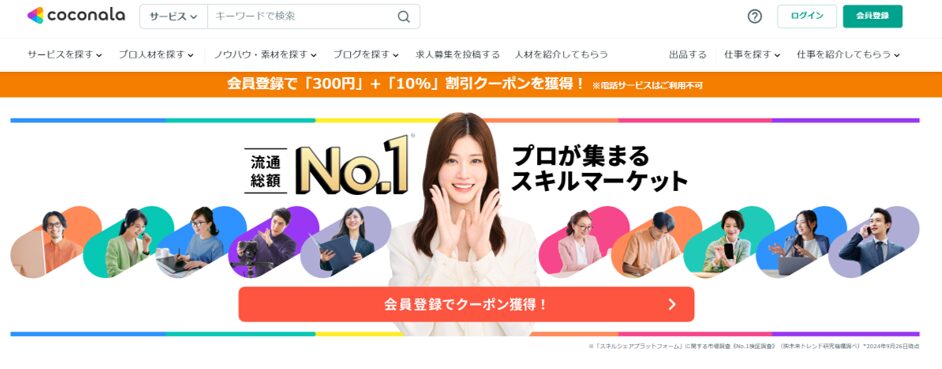 ココナラは専門知識などのスキルを個人が販売するサイトです。パソコン使い方や、絵の描き方などなど。