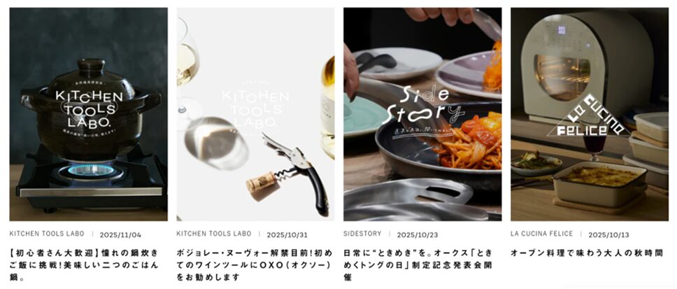 ワイヨットストアのポイントとして取り扱う商品の紹介方法が非常に上手です。商品紹介を兼ねた記事でありますが、どんなシーンでの利用がおすすめかや、料理の提案など写真たくさんに紹介しているのでとても参考になります。こんな食事を作ってみたいという記事がたくさんあります。ついついそんな記事を見ているとまずは形から揃えてみようという気にさせてくれるのでぜひ参考に見てみて下さい。